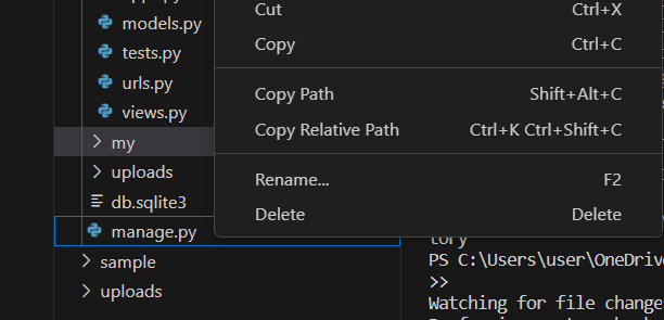 Django 프로젝트를 시작하면서 가장 먼저 만나는 파일 중 하나가 manage.py입니다. 이 파일은 Django 프로젝트를 관리하고 다양한 작업을 수행할 때 사용하는 핵심 모듈입니다. 일반적으로 python manage.py runserver 명령을 사용하여 서버를 실행하고 웹 애플리케이션을 확인할 수 있습니다. python manage.py runserver 서버를 실행해 보겠습니다. 서버가 실행되어야 우리가 만든 웹을 확인할 수 있습니다. 서버가 실행되면 아래와 같은 메시지가 표시됩니다. 이제 웹 브라우저를 열어서 주소창에 127.0.0.1을 입력해보세요. 그러면 로컬 호스트, 즉 여러분의 컴퓨터에서 실행 중인 서버로 접속할 수 있습니다. 이때 8000은 8000번 포트를 의미합니다. Django..