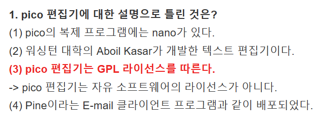 1. 다음은 RPM 패키지의 파일 형식이다. ( ) 안에 들어갈 내용으로 알맞은 것은? sendmail-8.12.8-6.( ).rpm 답: i686 해설: RPM 패키지명 형식은 '패키지명-버전-릴리즈번호.아키텍처.rpm'이다. 아키텍처는 패키지가 설치 가능한 CPU로 i586 또는 i686은 인텔 또는 AMD 계열의 32비트의 구형 CPU이다. 2. 다음 중 rpm 명령을 이용하여 설치 과정을 보기 위해서 사용하는 옵션으로 알맞은 것은? warning:ntp-4.2.6p5-10.el6.centos.2.x86_64. rpm: Header V3 RSA/SHA1 Signature, Key ID c105b9de: Preparing...#################### [100%] 1:ntp ########..