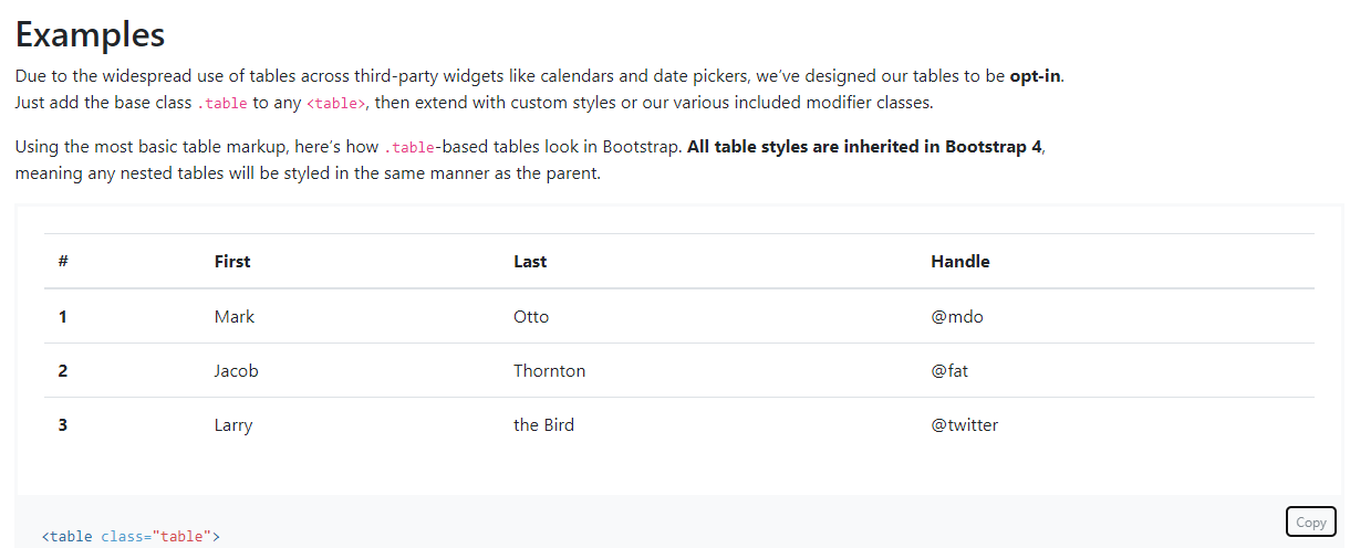 1. 부트스트랩의 Tables 섹션을 활용하여 테이블 디자인 선택 이제 원하는 키워드만 뽑아내도록 합시다. 다시 부트스트랩 Content로 이동하여 Tables 섹션을 찾습니다. 원하는 테이블 디자인을 찾은 후 해당 부분을 복사합니다. 2. home.html 파일에 테이블 디자인 코드 삽입 그리고 home.html 파일에 붙여넣기를 하고, {{ stock }} 부분은 삭제합니다. 필요없는 컬럼들을 제거하여 아래와 같이 테이블을 구성해줬어요. {% extends 'stocks/base.html' %} {% block content %} # First 1 Mark 2 Jacob 3 Larry {% endblock %} 3. 데이터 딕셔너리 형식을 활용하여 키워드(key)와 값을(value) 테이블에 출력 표..