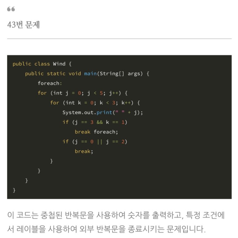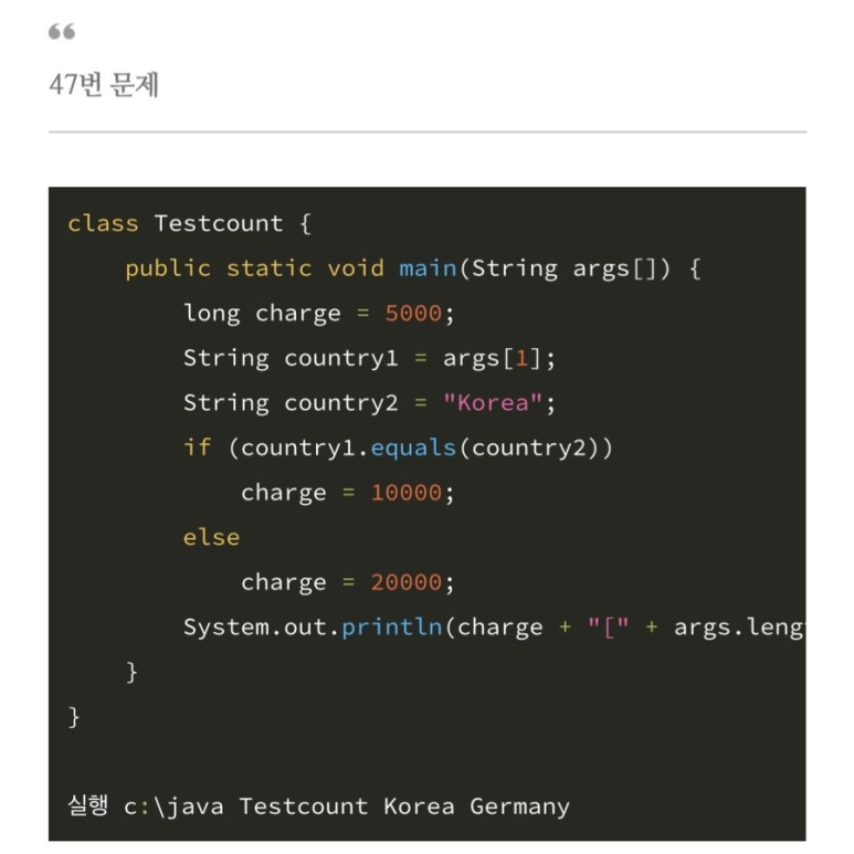 💡 드디어 마지막 특강! 50번 문제 class Feline { public static void main(String[] args) { Long x = 42L; // Long 타입의 정수 값인 42와 44로 취급해도 무방 Long y = 44L; // 즉 x = 42, y =44 System.out.print(" " + 7 + 2 + " "); // "+"가 7이랑 2를 연결한다는 의미. 앞에 문자열이 들어가면 연산자가 안 되고, 연결이 됨. System.out.print(foo() + x + 5 + " "); System.out.println(x + y + foo()); // x + y는 문자열 연결이 아니라 연산자로 수행 } static String foo() { return "foo"; } } L..